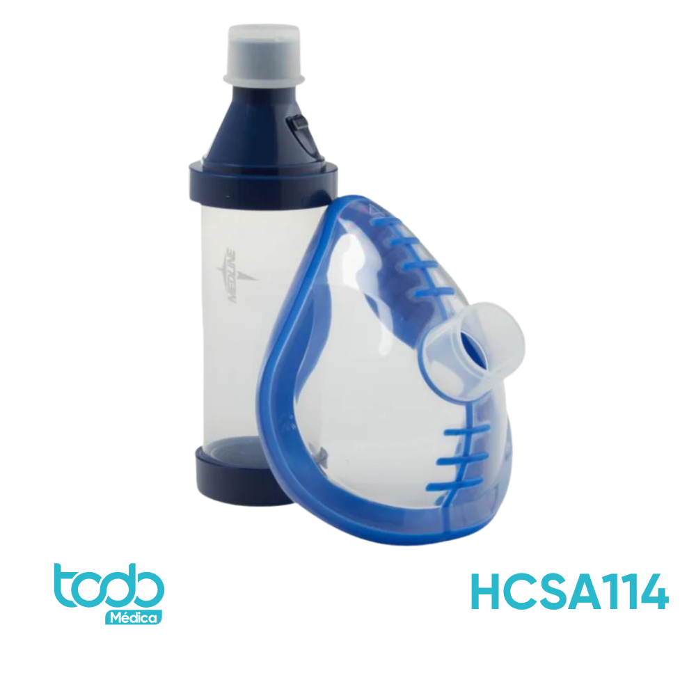 Este espaciador con válvula unidireccional está diseñado para optimizar la administración de medicamentos a través de inhaladores de dosis medida (MDI). Su cámara de retención permite una inhalación más eficaz, facilitando que el medicamento llegue directamente a los pulmones.